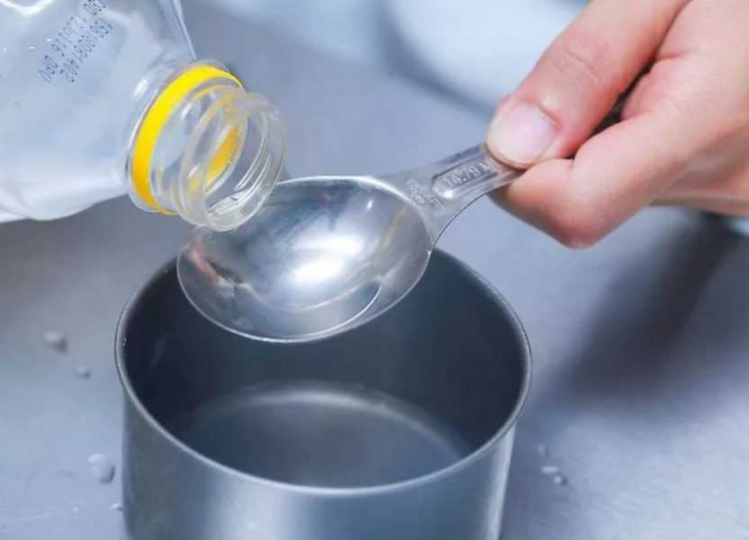 - в чистой емкости смешивают уксус и воду (пропорция 1:1);