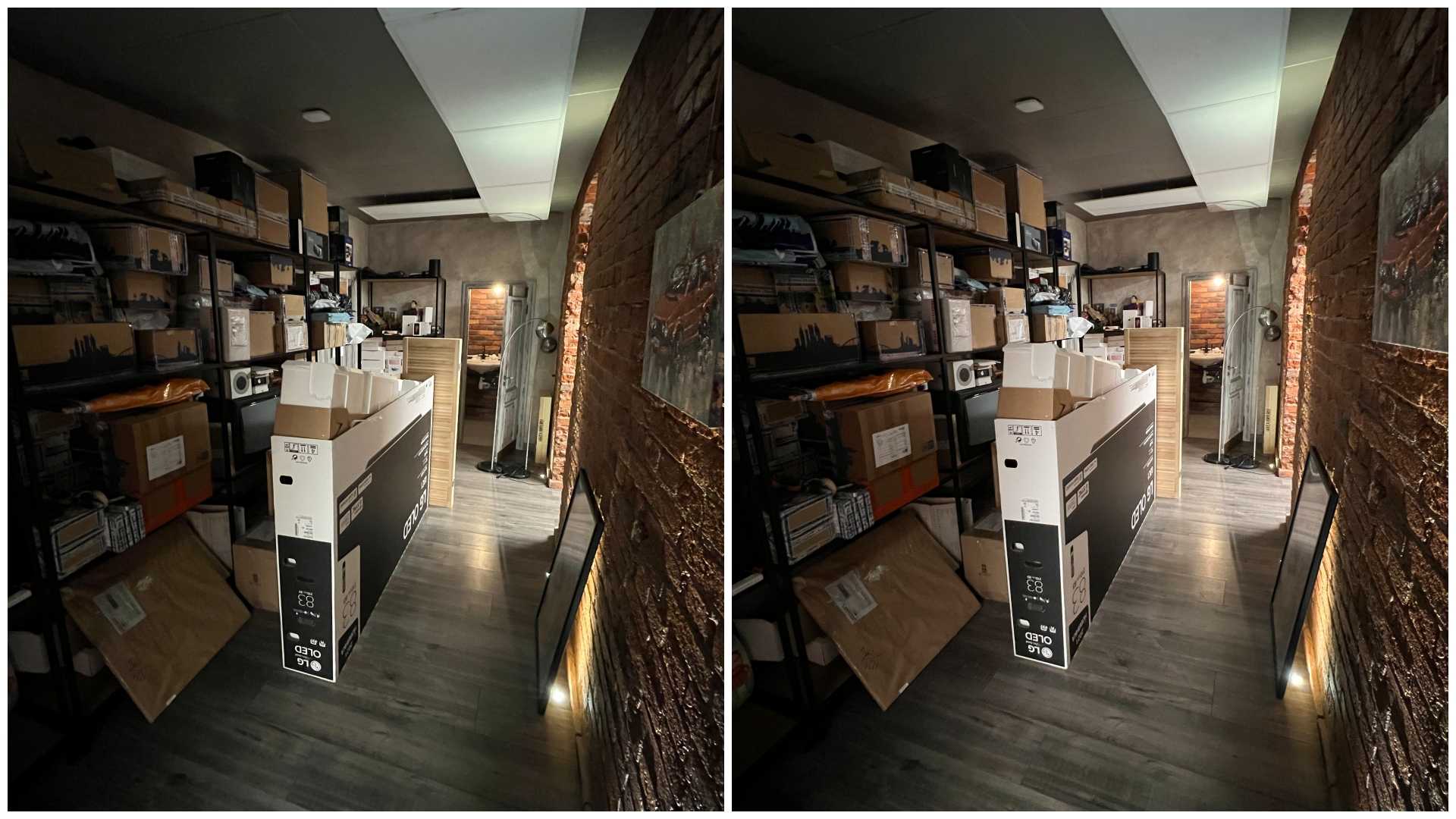 Переходим к широкоугольнику. Он однозначно лучше на iPhone 13 Pro: оптика светлее, а как только начинаются проблемы с освещением, то iPhone 13 сдаёт позиции. Если снимки не увеличивать, то на миниатюре разница малозаметна: