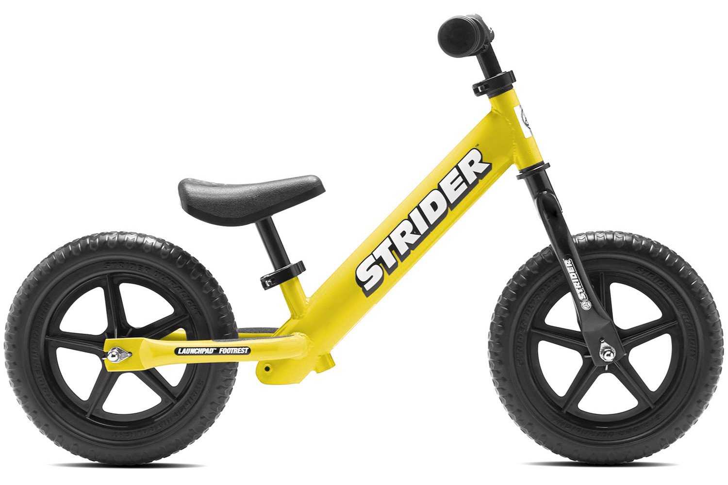 - Strider 12 Sport. Универсальный ранбайк, позволяющий регулировать высоту седла в пределах 28–41 см, а руля — 46-56 см. Конструкция отличается надежностью и эргономичностью, беговел очень легкий. Колеса цельнолитые, на заднее можно установить тормоз, на раму — подножку.