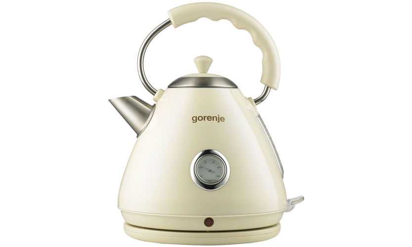 Очень интересный и красивый дизайн в стиле ретро. Есть термометр, что для некоторых целей может быть очень даже полезно. Съёмная крышка: паром можно обеззараживать вещи или посуду. Из минусов — только маломощность: всё-таки 1850 ватт — это не 2200, кипятит он 1,7 л дольше своих конкурентов. Но это придирки: чайник очень красив, если он подходит под интерьер вашей кухни – берите и не задумывайтесь, проблем здесь никаких не наблюдается.