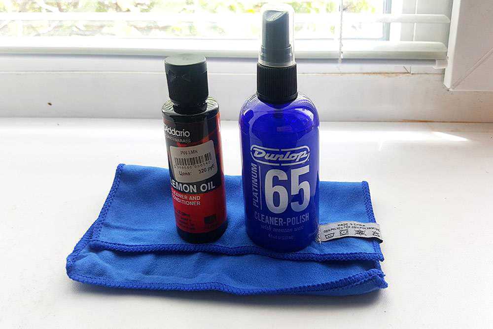 Средства по уходу. После игры на грифе остается жир с пальцев, грязь, пыль, на струнах — частички кожи. Если за гитарой не ухаживать, струны и лады прослужат меньше, накладка может потрескаться от недостаточной влажности. Главное правило — мыть руки перед игрой, а после игры протирать струны, можно просто салфеткой из микрофибры.