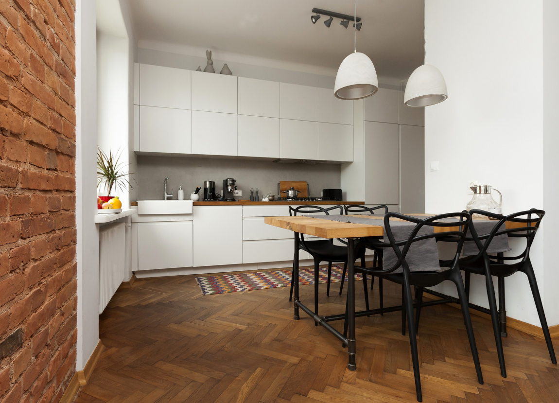 Существует убеждение, что использование ламината для пола на кухне – не самое правильное решение. В какой-то степени это верно: повышенная влажность воздуха, брызги, риск пролить что-то на пол – все это не лучшим образом сказывается на таком напольном покрытии.