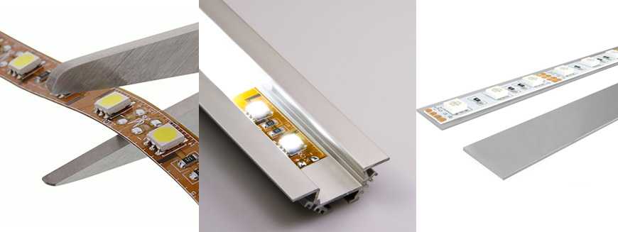 Для достижение необходимой длины СДЛ разрезается в специальных местах не разрывая схему подачи напряжения.