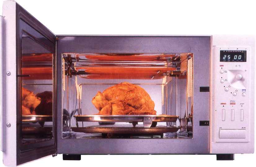 Приготовление блюд при помощи этих функций осуществляется при помощи поворотных и тактовых элементов и специальных комбинированных режимов (микроволны + конвекция и микроволны + гриль).