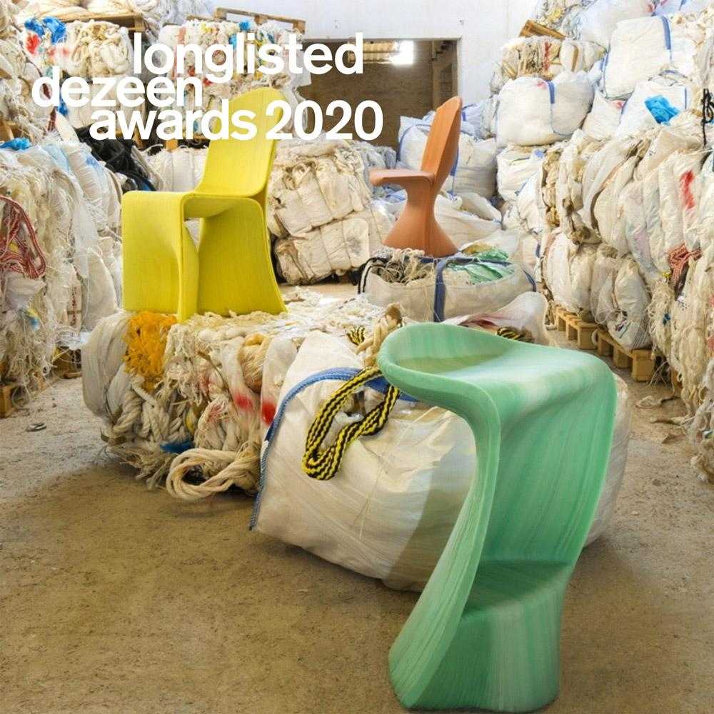 New Raw, компания, базирующаяся в Нидерландах, создала серию стульев Second Nature из морского пластика в сотрудничестве с Blue Cycle, греческой инициативой, направленной на повторное использование морских пластиковых отходов, образующихся при судоходстве и рыболовстве.