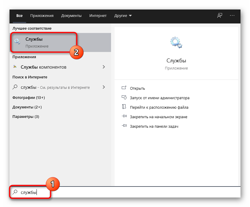 - Откройте «Пуск» и отыщите там приложение «Службы», которое и откройте.