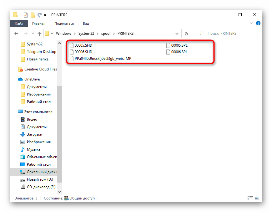Теперь нам нужно удалить все содержимое папки PRINTERS, что удалит и очереди в печати. Это мы рассмотрим в следующем способе.