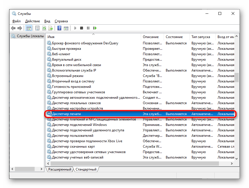 5) Включите службу «Диспетчер печати» (которую до этого отключили) и проверьте работу принтера. Проблема должна быть решена.
