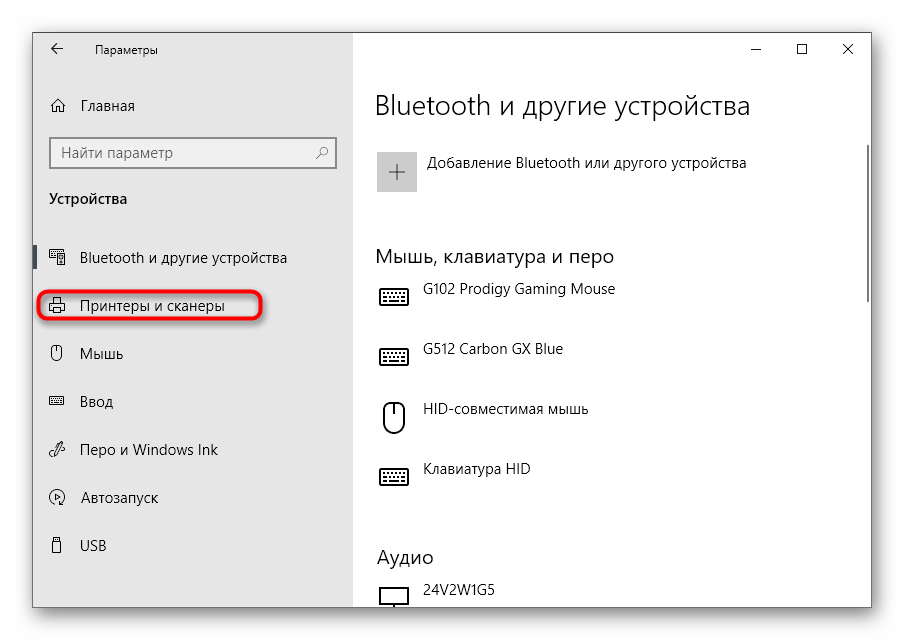 Слева выберите «Принтеры и сканеры», справа кликните по необходимой модели печатающей техники. После, появятся соответствующая кнопка, после клика по которой можно посмотреть очередь.