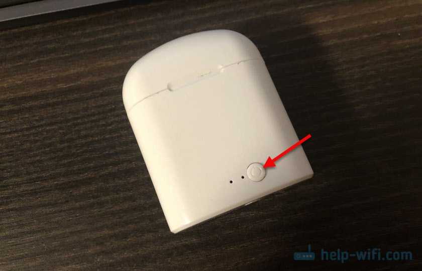 Практически на всех моделях наушники заряжаются всегда, когда находятся в кейсе. Есть несколько моделей, на кейсе которых есть кнопка питания, с помощью которой можно включить или отключить зарядку наушников. Выглядит это вот так: