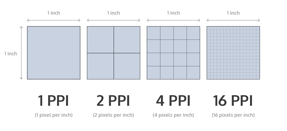 Плотность измеряется в пикселях на один дюйм (Pixels Per Inch, PPI)