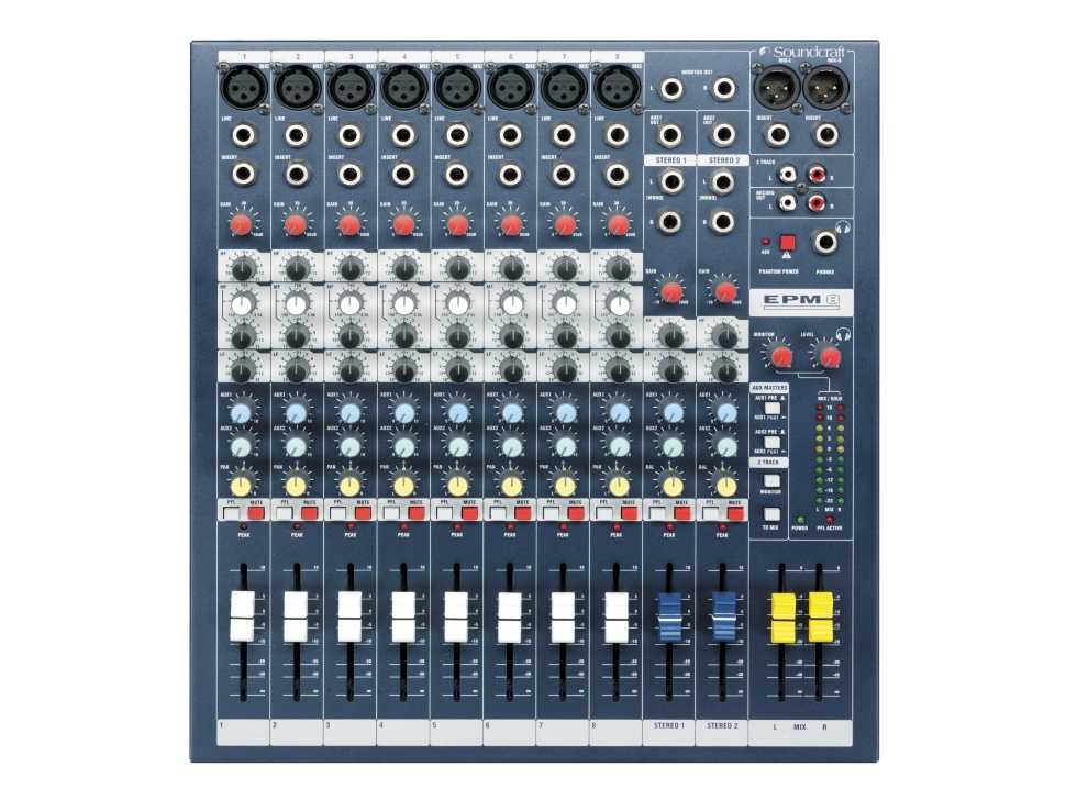 Такой пульт уже вполне пригоден для репетиций малых коллективов, имеет два моноканала с предусилителем IMP и фантомным питанием, два стерео канала, трехполосный эквалайзер на каждом канале и фильтр НЧ на моно каналах.