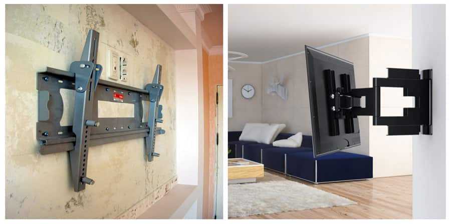Для размещения телевизионного аппарата лучше использовать регулируемые кронштейны. Главное достоинство подобных креплений заключается в возможности пользователя наклонять устройству в сторону без необходимости сверлить в стене дополнительные отверстия. Конструкция пригодится на случай ремонта или перестановки мебели в комнате.