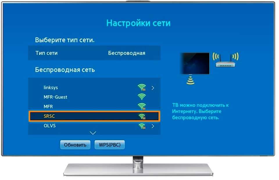 Если изначально синхронизация выполнялась посредством WPS, то попробуйте ввести пароль вручную. Если ТВ не видит сеть, то, вероятно, в роутере скрыта ее видимость – в настройках это можно исправить.