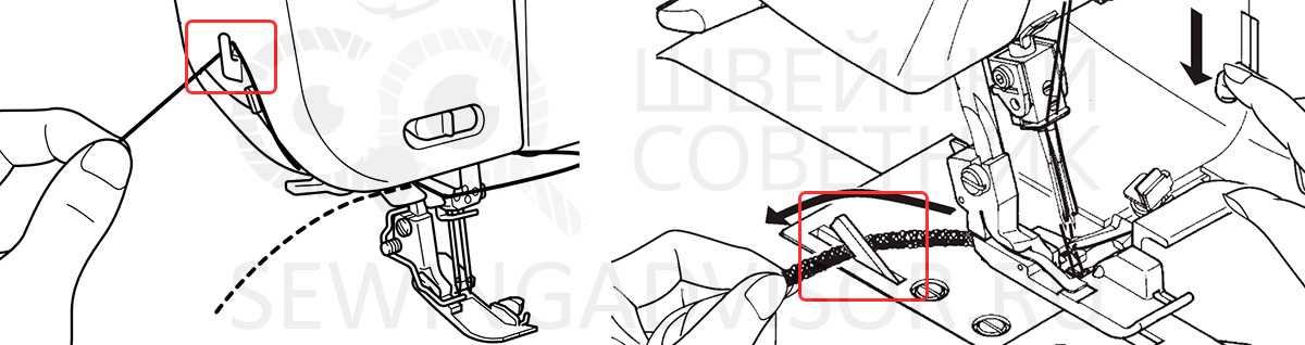 Заправка нитей. От правильной заправки ниток будет зависеть качество шва. Зачастую в изделиях присутствуют автовдеватели. Когда они отсутствуют, то нужно проверить, насколько удобно можно добраться до петлителей, чтобы нити было легко заправлять вручную.