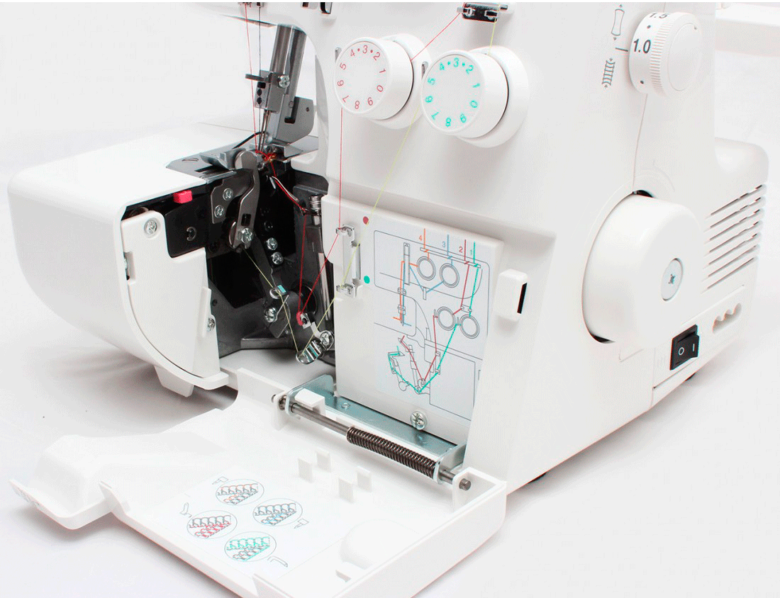 Дополнительный функционал. Во время выбора коверлока нужно сделать акцент на наличии схемы заправки ниток на панели