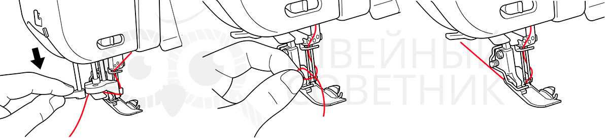 Для заправки нити в ушко иглы используется нитевдеватель. Встречается в довольно дорогих моделях и помогает сэкономить время и нервы.