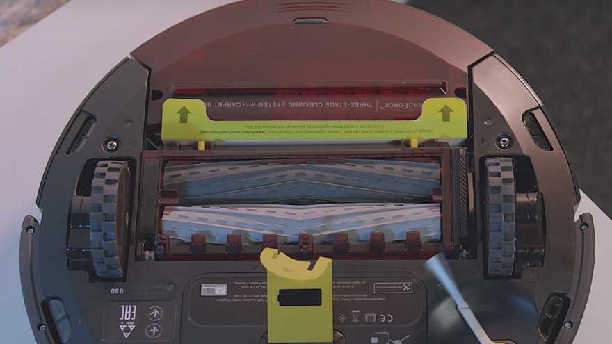 Как видите, в iRobot Roomba 880 не используется валик с щетиной. От него решили отказаться, потому что наматываются волосы, которые потом сложно доставать.