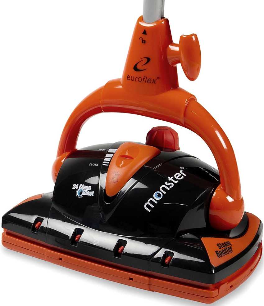 Паровая швабра Euroflex Monster выглядит стильно. С ее помощью можно 2-3 раза убрать стандартную квартиру благодаря объемному резервуару для воды. Устройство исчерпывающе выполняет возложенные на него функции, имея два режима управления и две насадки в комплектации. Ручка электрошвабры регулируется по длине, что позволяет мыть пол в труднодоступных местах: под диваном, кроватью, кухонным гарнитуром.