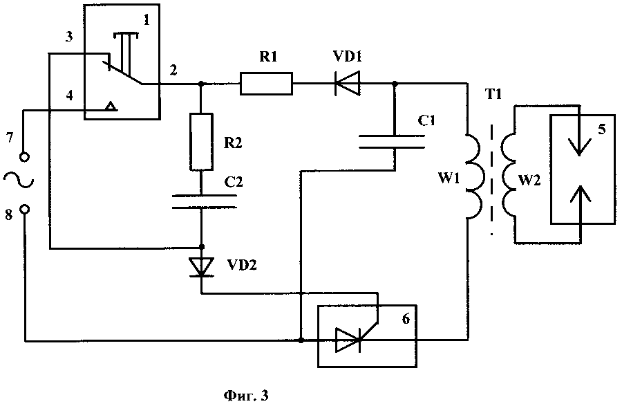 - уровень на тиристоре постепенно растет, когда он достигает установленного порога, то конденсатор разряжается;