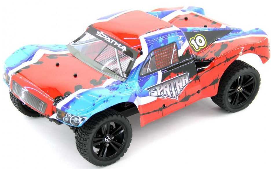 Himoto Spatha, транспортное средство на пульте управления имеющее отличное качество сборки, возможности ходовой, а также доступную цену, прекрасно подходят для гонок по бездорожью. У машины независимая подвеска с особой геометрией, прочный обтекаемый корпус, электромотор с усилением до 3 кг, все части прибора с высоким уровнем защиты от влаги и устойчивостью к низким температурам, то есть позволяет использовать зимой на снегу.