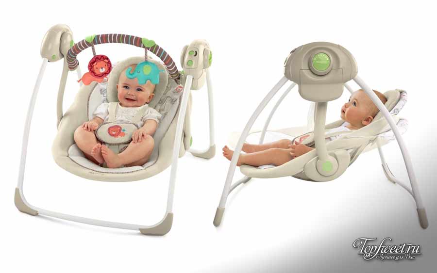 Модель электрокачелей InGenuity для новорожденных выглядят как модный девайс и станет отличной деталью в интерьере. Она легко складывается, что облегчает процесс транспортировки, и работает автономно, это большой плюс для тех, кто находится в постоянном движении. Устойчивая металлическая конструкция с элементами из пластика надежно стоит на полу, предотвращая ее переворачивание. Кроме этого, безопасность обеспечивают пятиточечные ремни, фиксирующие ребенка в кресле. Устройство имеет специальные прокладки, помогающие избежать скольжения малыша. Мягкое покрытие на сиденье создает дополнительный комфорт, а еще за ним легко ухаживать (можно стирать в машинке).