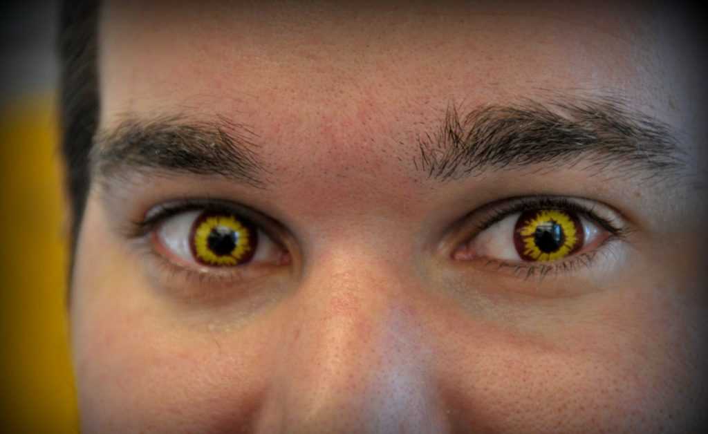 Карнавальные. К этому типу относятся нестандартные вариации цветных линз — красные, белые, полностью черные глаза. Самыми популярными и запоминающимися являются модели с различными рисунками — звериные или демонические глаза, изображения различных предметов, паттерны.