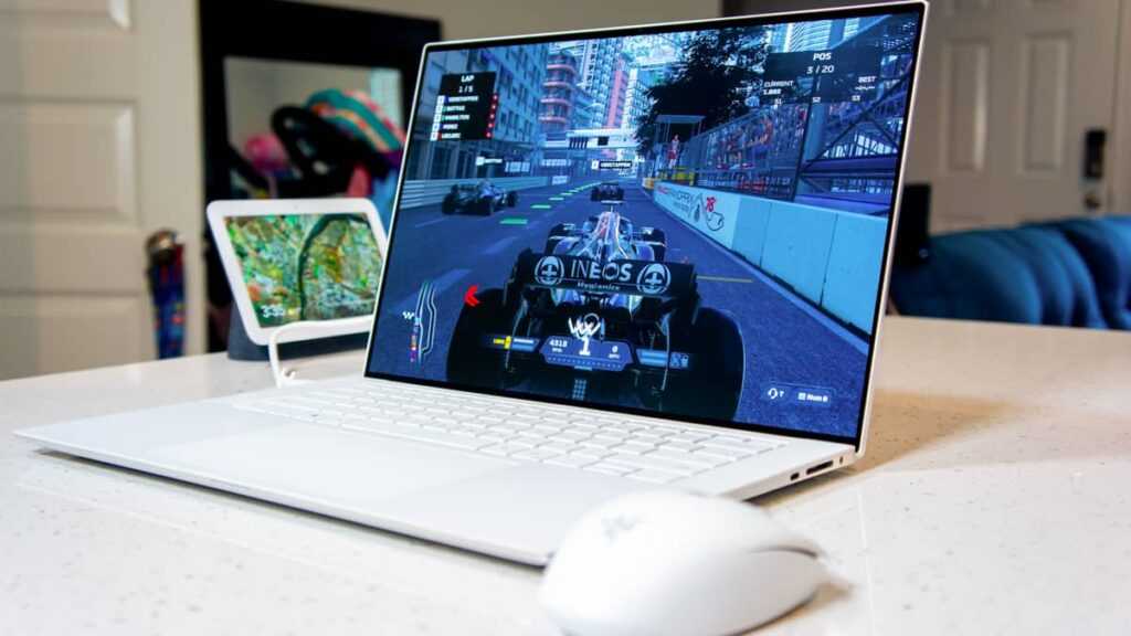 Девайс радует качественным звучанием из двух динамиков, и у него не возникает сложностей с подключением периферии. Для нее есть три USB-A и HDMI, еще тут поставили физический разъем для подключения к интернету. Батарея этого устройства 36 Вт*ч, вес – 1,9 кг.