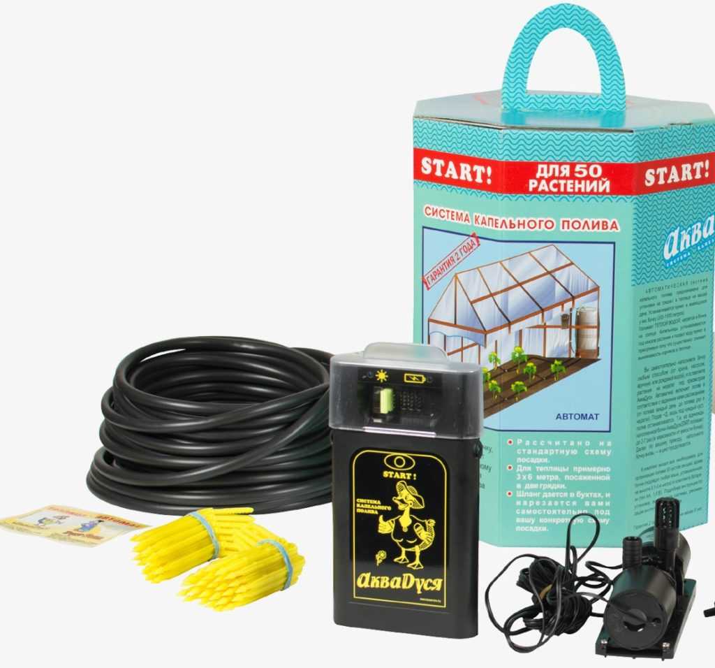 Системы можно выбрать следующих моделей: Аквадуся, белорусского производителя совместно с насосом, работает автономно, программируется. Применяется для площади до 2 соток, цена от 5 400 рублей.