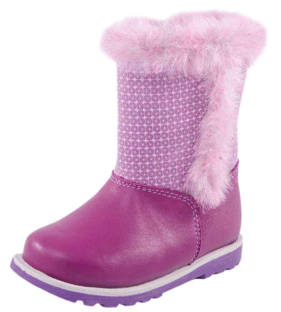 Вверх сноубутсов изготовлен из текстиля. Для внутренней подкладки используется искусственный мех, а для подошвы выбран полиуретан. Общий вес изделия небольшой, поэтому ребенку не будет затруднительно в них передвигаться. В указанной модели нет застежки.