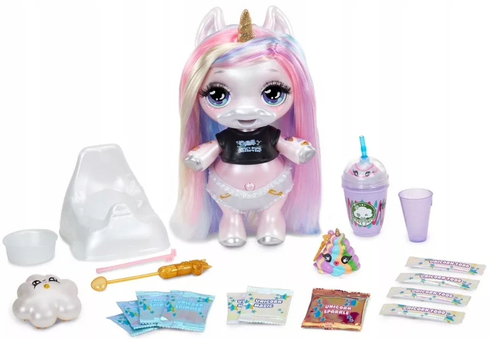 Примерно такой же популярностью, как куклы LOL неизменно пользуются единорожки с длинными разноцветными волосами. Они упакованы не в обычную коробку, а в баночку как у газировки. Внутри находится не только единорожек, но и сюрприз. Производители те же, что и у кукол. Единорожков можно расчесывать, плести косички, делать прически. Кроме того, у каждого есть свой комплект одежды, набор для кормления специальной смесью. Маленький горшочек снабжен особым цветным элементом, который появляется после того, как ребенок посадит своего любимца на него.