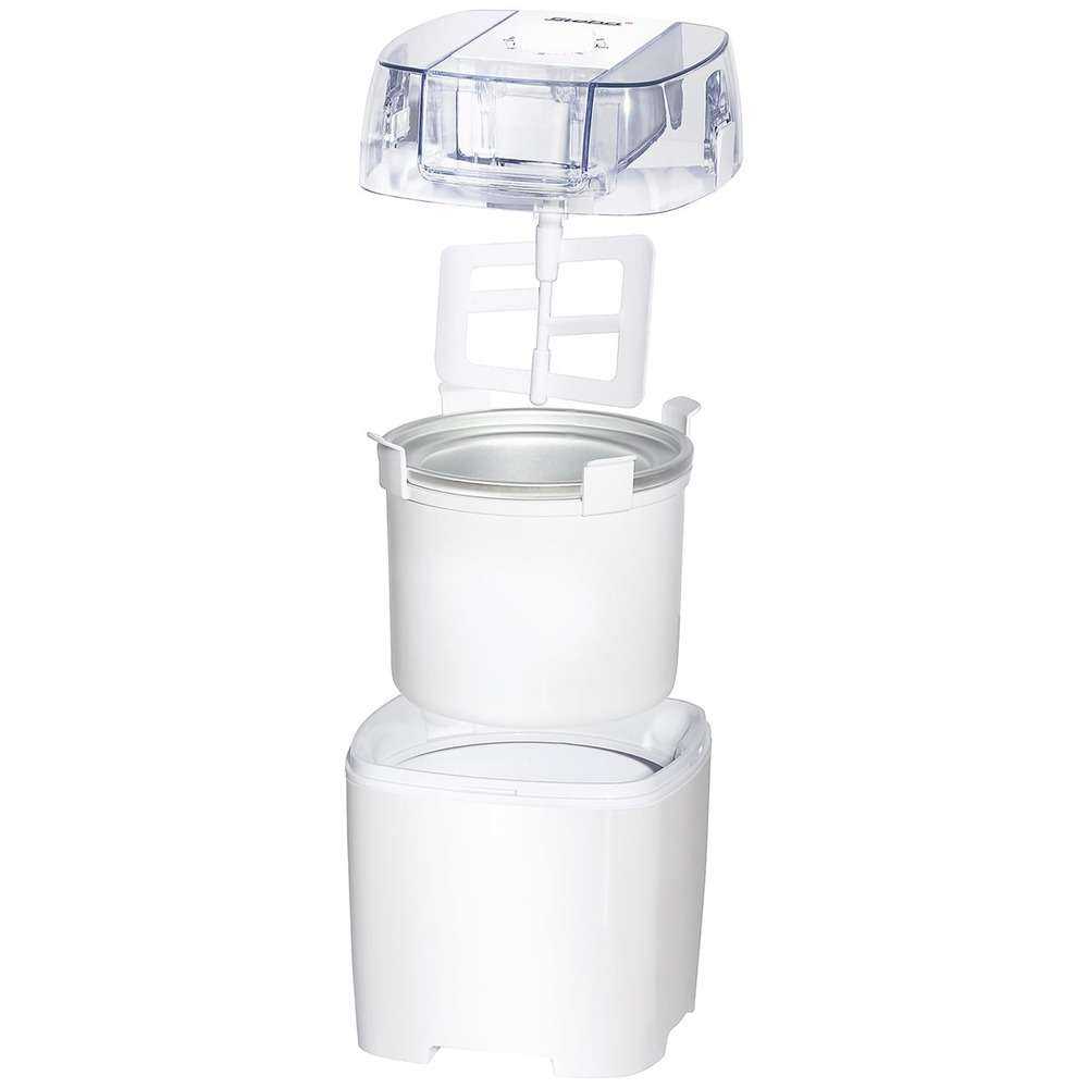 Металлическая мороженица Rommelsbacher работает в полуавтоматическом режиме и помимо мороженого, способна приготовить замороженный йогурт, сорбет и даже фруктовый лед. Двигатель снимается с помощью отдельного блока, за счет чего аппарат легко мыть. Встроенный таймер на 40 минут и ЖК-дисплей обеспечат удобство приготовления. Имеет защиту от перегрева.