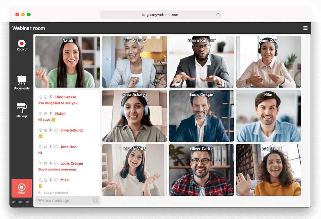 совместная работа над документами во время видео-конференции, демонстрация экрана, работа с использованием Flash, мультимедиа файлов и PowerPoint демонстраций, сообщения в чате, повышенная безопасность, веб-сервис, не требующий установки, запись и редактирование записей вебинаров.