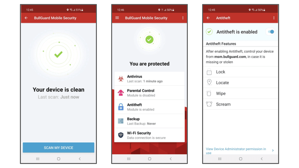 В бесплатном приложении BullGuard также есть автоматическая блокировка устройства при изъятии сим-карты, сканер WiFi-сетей и резервное копирование данных.
