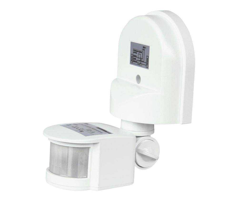 Разработан для использования внутри и снаружи помещений. Отличается хорошим углом обзора по горизонтали – 150 градусов. Корпус изготовлен из огнестойкого пластика, имеет класс защиты от пыли, влаги IP44. Сенсор PIR реагирует на движения в радиусе до 12 метров. Время включения электричества настраивается, диапазон от 8 секунд до 7 минут.