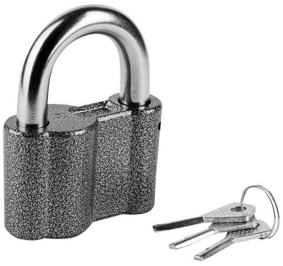 Имеет полузакрытый корпус, который затрудняет доступ к запорному элементу. П-образная форма не мешает установке на петли. Это увеличивает взломостойкость без усложнения конструкции, препятствует доступу воды во внутреннюю часть механизма. Дужка изготовлена из закаленного стального прута диаметром 11 мм, устойчивым к высоким нагрузкам.