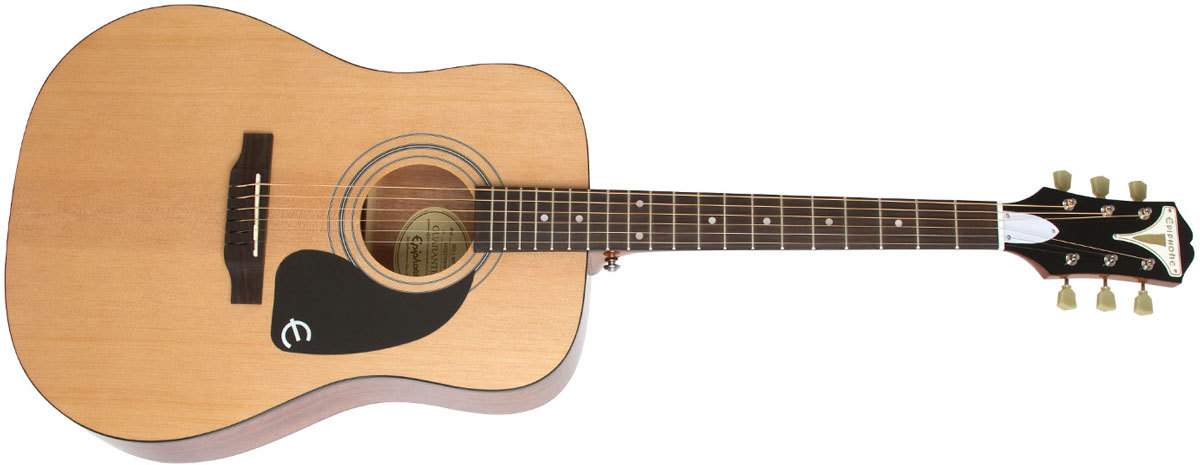 Одна из лучших акустических гитар для начинающих. Научиться играть на ней довольно легко. Однако ее нельзя назвать бюджетной. Поэтому покупать Epiphone PRO-1 стоит только в том случае, если вы уверены, что не откажетесь от обучения. Производитель установил очень удобный гриф. Даже после часа занятий ваши руки не слишком устанут. Этому также способствует среднее натяжение струн, что также облегчает настройку гитары под себя. Еще одним плюсом для начинающих является удобное расположение ладов.