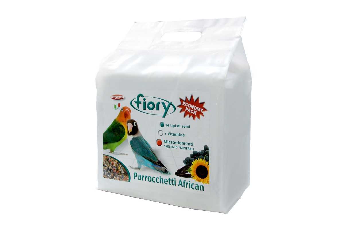 - Fiory Pappagalli – качественный продукт для больших птиц, состоит из 9 видов злаков, сухофруктов, минералов.