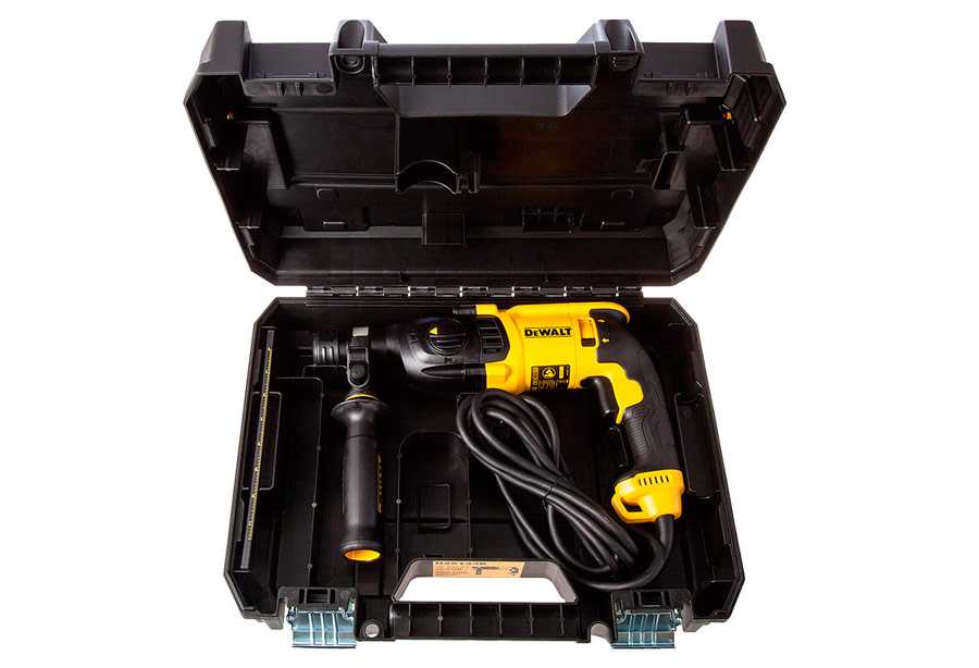 Перфоратор DeWALT D25601K (8 Дж) тоже работает от сети, за счет двухметрового кабеля с плотным покрытием. Это позволяет профессионалам использовать его на протяжении долгого времени, без всяких остановок. Делать это, несмотря на внушительную массу устройства в 6,8 килограмма, очень удобно. Прибор эргономичен, а все его компоненты расположены так, что не мешают во время работы. Производитель предусмотрел ограничительную муфту, защищающую от внезапных поломок, а также ограничитель глубины бурения или сверления. Также перфоратор гасит излишние вибрации, что лишь повышает комфортность применения D25601K (8 Дж).