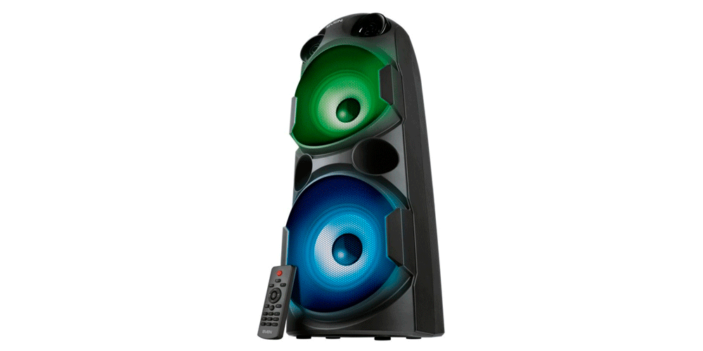 Одна из лучших моделей в своём ценовом сегменте. Подойдёт для организации вечеринок, в том числе караоке для дома, пригодится для дачи. Но как вариант переносной акустики её рассматривать сложно. Едва ли кто-то захочет таскать с собой 5 кг да ещё и с габаритами 230x640x260 мм