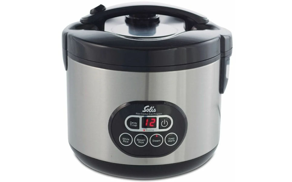 Рисоварка Solis Rice Cooker Duo Program – это комбинированная модель, состоящая из рисоварки и пароварки. Прибор позволяет варить крупу и вместе с тем отваривать овощи на пару. Одновременная обработка продуктов позволяет экономить как время, так и электроэнергию. Чаша устройства является съемной, что выгодно отличает модель от многих других аппаратов данного класса. Вместительность зоны варки составляет 1,2 л. При этом контактные поверхности чаши покрыты антипригарным слоем. К стенкам такой емкости не будет липнуть крупа, что повышает качество термообработки и упрощает уход за чашей. Рисоварка разработана для тех пользователей, кто часто использует в рационе диетические продукты.