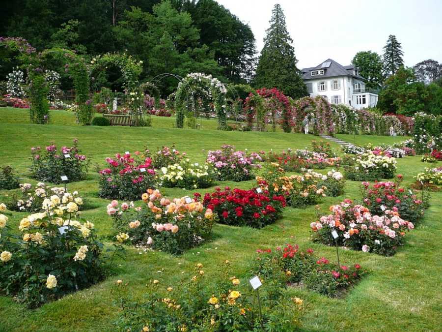 На фото розария на даче видно, что обычно этот вид розария размещают около стены или у забора.