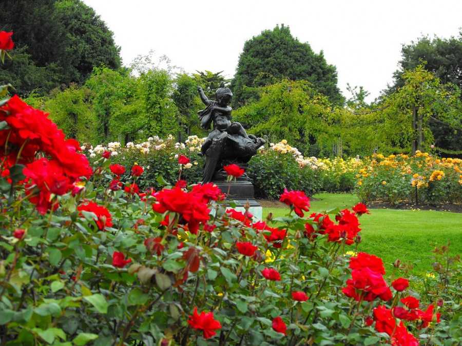 Обозримый с одной стороны. Название этого вида говорит само за себя. Таким розарием можно любоваться только с одной стороны. На заднем плане обычно располагаются высокие парковые розы, на среднем ― розы средней высоты, а на переднем ― почвопокровные сорта.