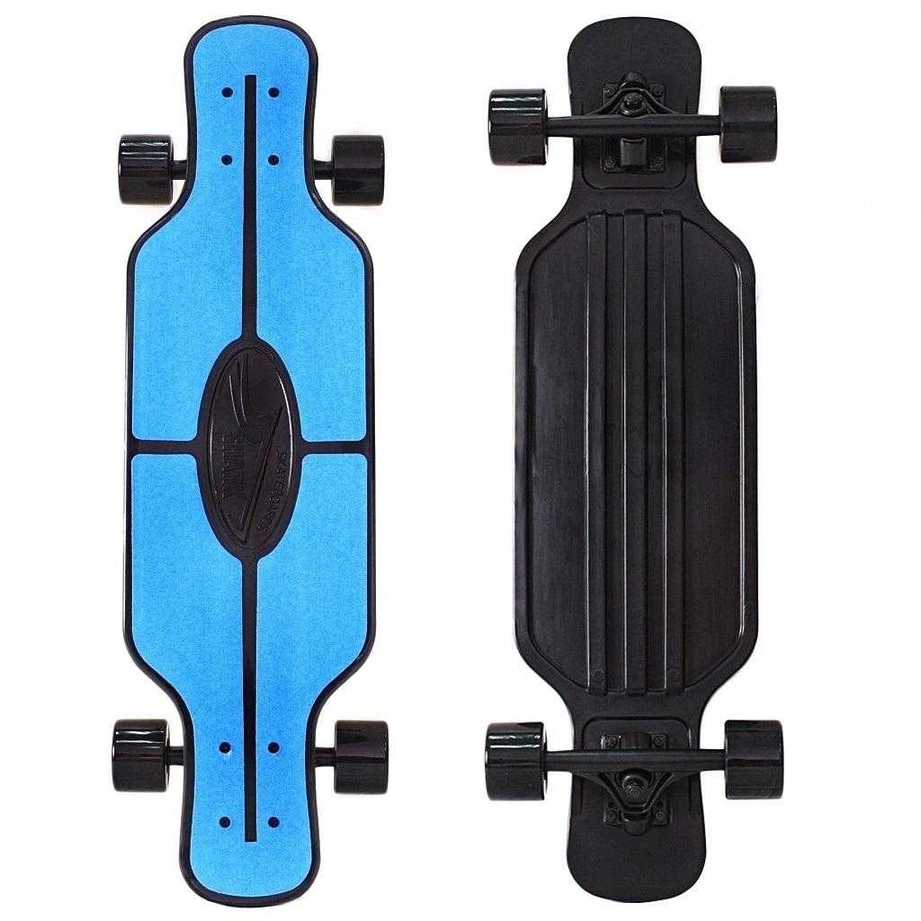 Пластиковая основа высокой прочности немного прогибается во время катания, чем обеспечивает прекрасное скольжение. Присутствует вогнутость относительно продольной линии для улучшения маневренности. Алюминиевая подвеска с подшипниками ABEC 7 и жесткие колеса диаметром 65 мм – база для развития хорошей скорости. Размеры средние: длина 31 дюйм, ширина 8,7 дюймов, вес 2,5 кг. Параметры определяют ее к так называемым городским типам для езды по асфальту и плитке. Максимальная нагрузка – 150 кг.