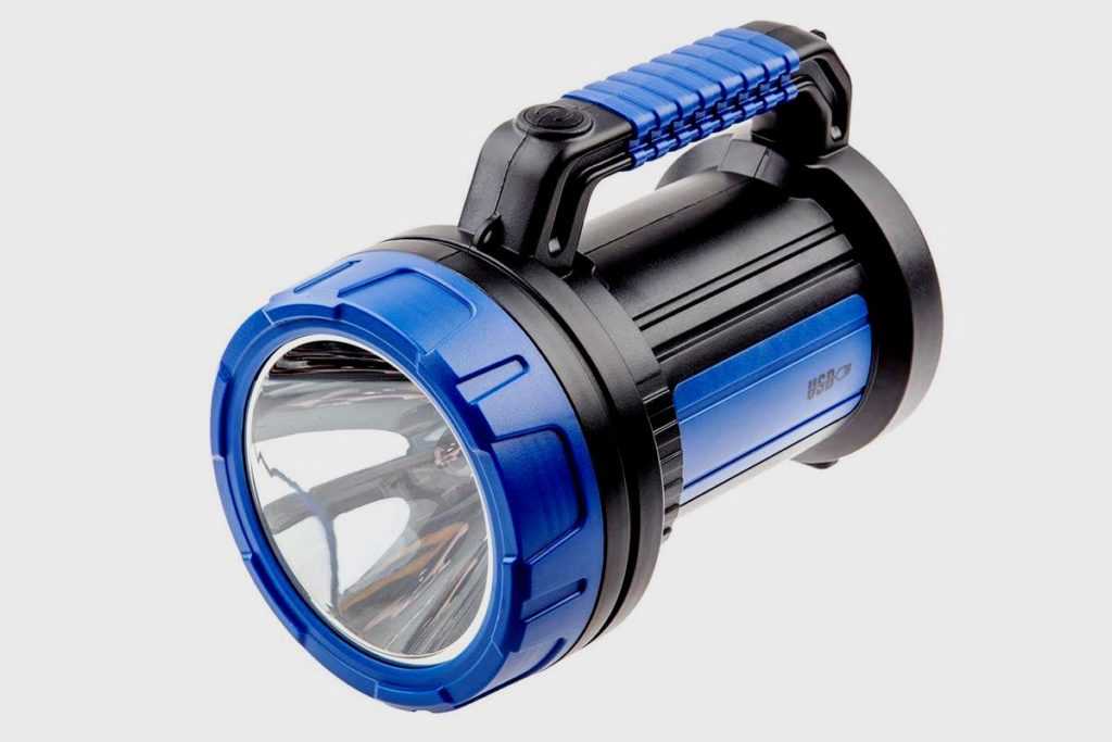 Несмотря на наименование, этот продукт родом из Поднебесной. Ручной фонарик может использоваться в качестве прожектора. Дальность света – 400 м. В основе лежит использование 420 люменов. Встроенная АКБ может восполнять заряд посредством автомобильной зарядки или сетевого шнура. Изделие получилось крупным. Коэффициент автономности составляет 10 часов. Присутствует отметка о влагозащите, но проверять ее на практике пользователи не советуют. Именно такой фирмы лучше купить фонарик владельцам дачных участков.