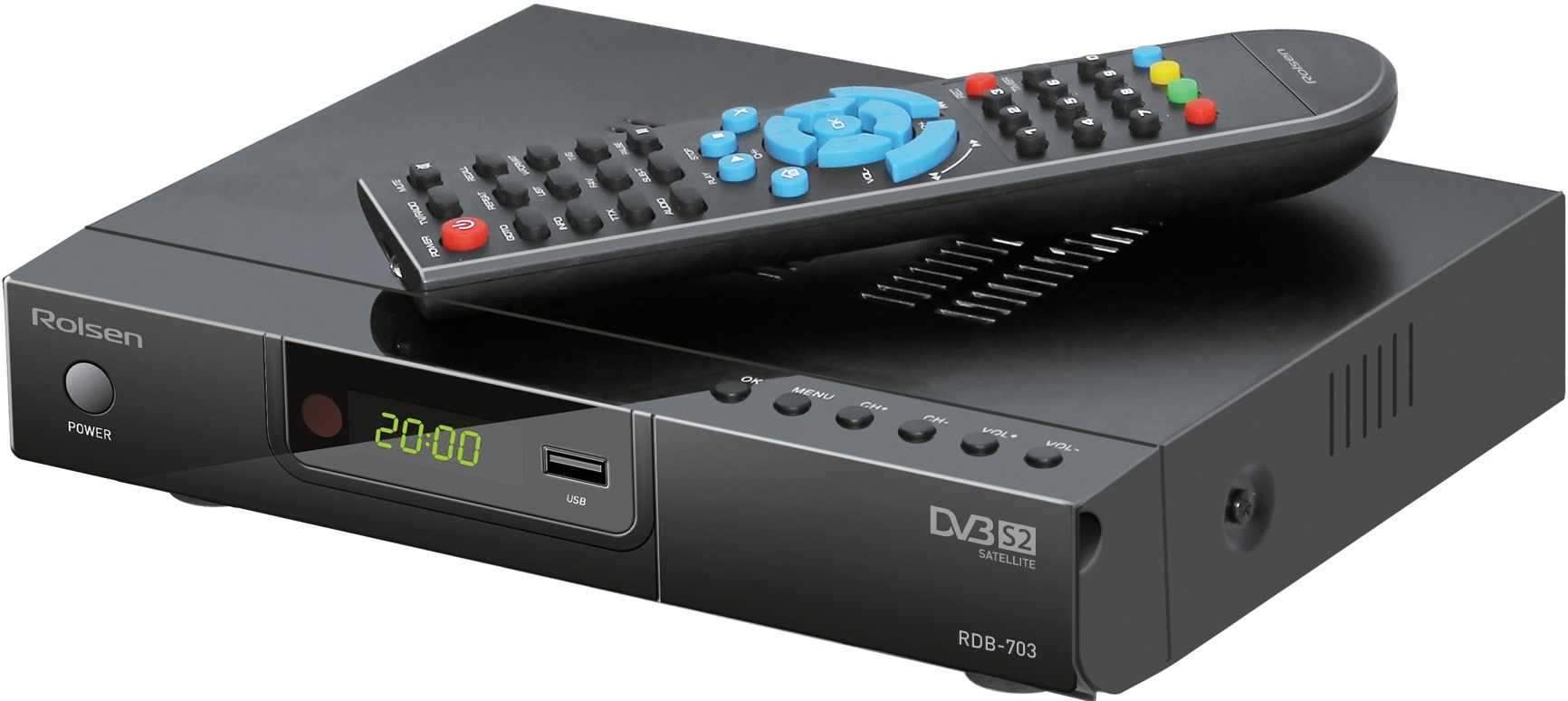 - Бюджетные ресиверы. В большинстве случаев рассчитаны на один конкретный формат вещания цифры (эфирное, кабельное или спутниковое ТВ) и включают минимальное число разъемов. Зачастую приборная панель отсутствует, а управление доступно только с пульта. Их достоинство — низкая стоимость и компактность устройства. Недостаток — они являются простыми декодерами, которые фактически не имеют дополнительных возможностей.