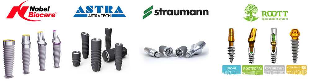 Лидерами в области производства имплантологических продуктов, считаются NobelBiocare (США), AstraTech (Швеция), Straumann (Швейцария), ROOTT (Швейцария). Эти производители на профильном рынке представлены давно, у них собственные исследовательские базы, производство полного цикла, они активно разрабатывают новые технологии в имплантологии, предоставляют собственное ПО, сканирующие, моделирующие технологии, хирургические инструменты. Линейки имплантатов представлены большим выбором моделей для различных клинических случаев, на свои продукты производитель дает пожизненную гарантию. Единственный минус у таких конструкций – цена.