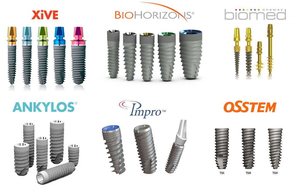 Изготовители, выпускающие конструкции по хорошей цене, с техническими характеристиками, не уступающими премиальным брендам — Xive (Германия), Biohorizons (США), Biomed (Швейцария), Ankylos (Германия), Osstem (Южная Корея), Impro (Германия).