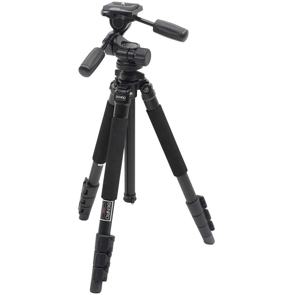 Модель от Benro из алюминиевого сплава со штангой диаметром 26 мм выдерживает вес до 6 кг, благодаря чему подходит и для использования профессионалами. Сам фотоаксессуар весит всего 2,12 кг. Двуручная головка класса 3D является съемной и поставляется в комплекте со штативом и позволяет удерживать камеру, поворачивая ее в трех разных плоскостях. Предельная высота штатива в разложенном виде составляет 155,9 см. Это просто идеальный показатель для архитектурной и пейзажной съемки.