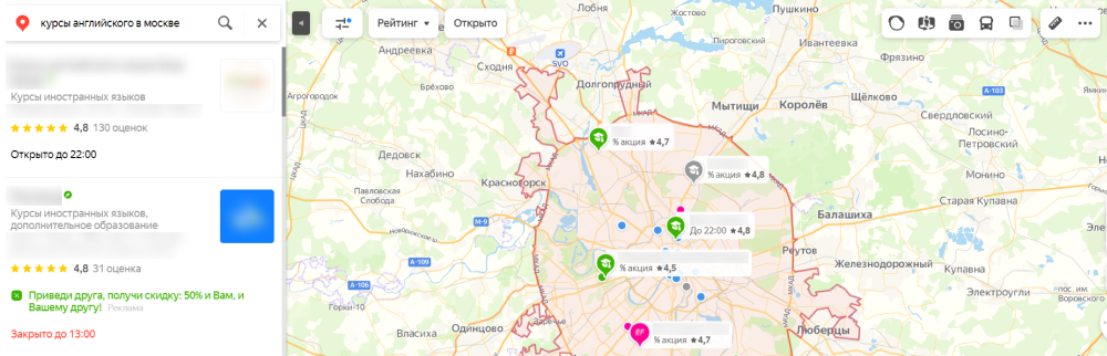 Конкуренты курсов английского в Москве на «Яндекс.Картах»